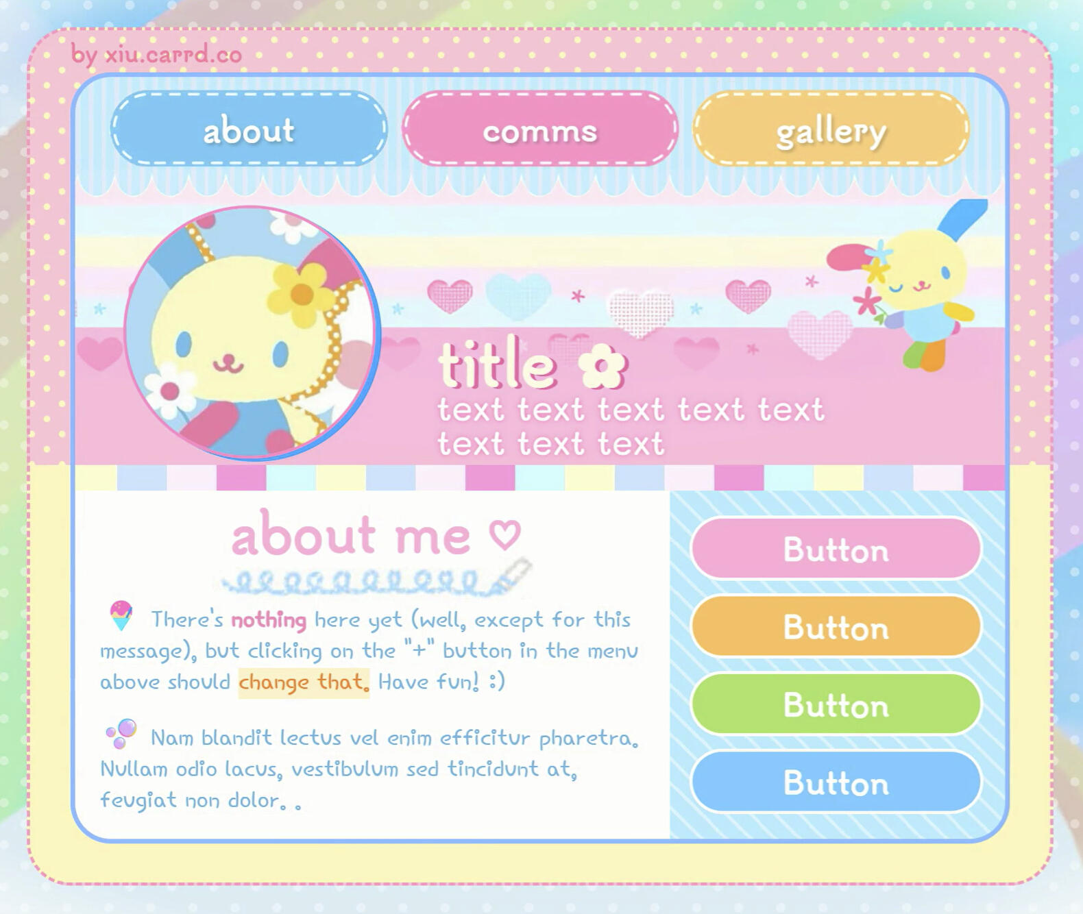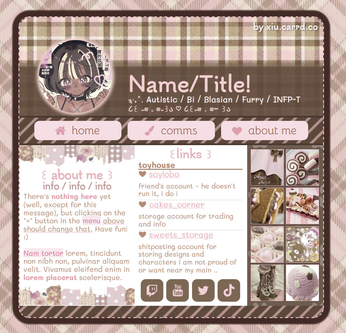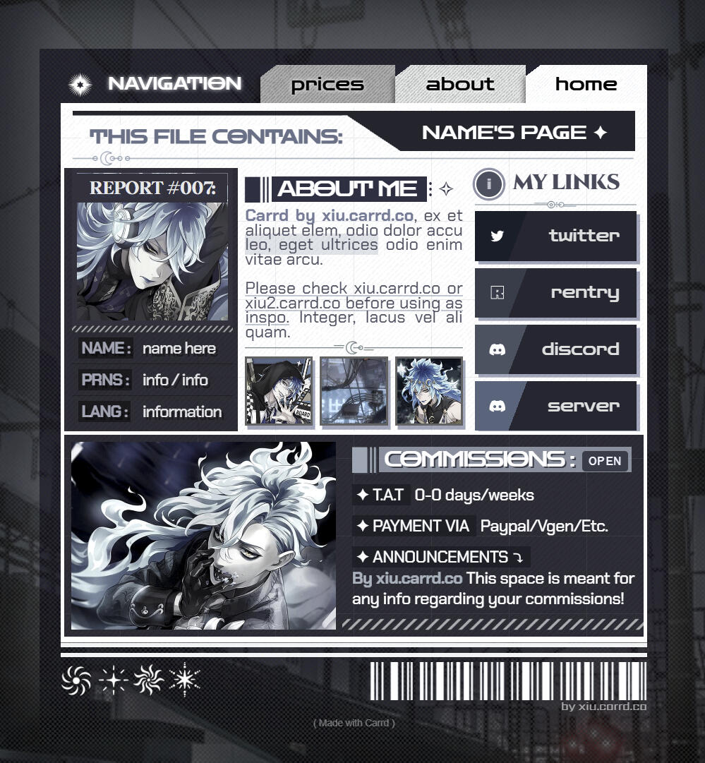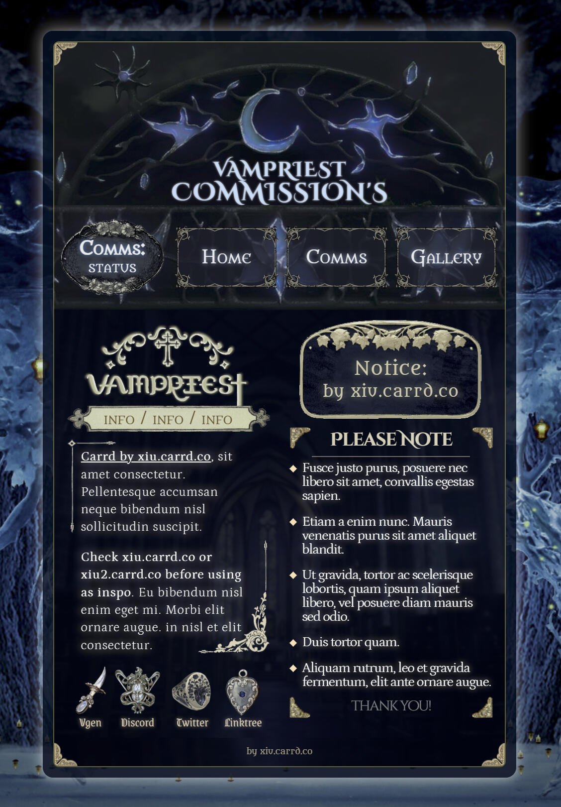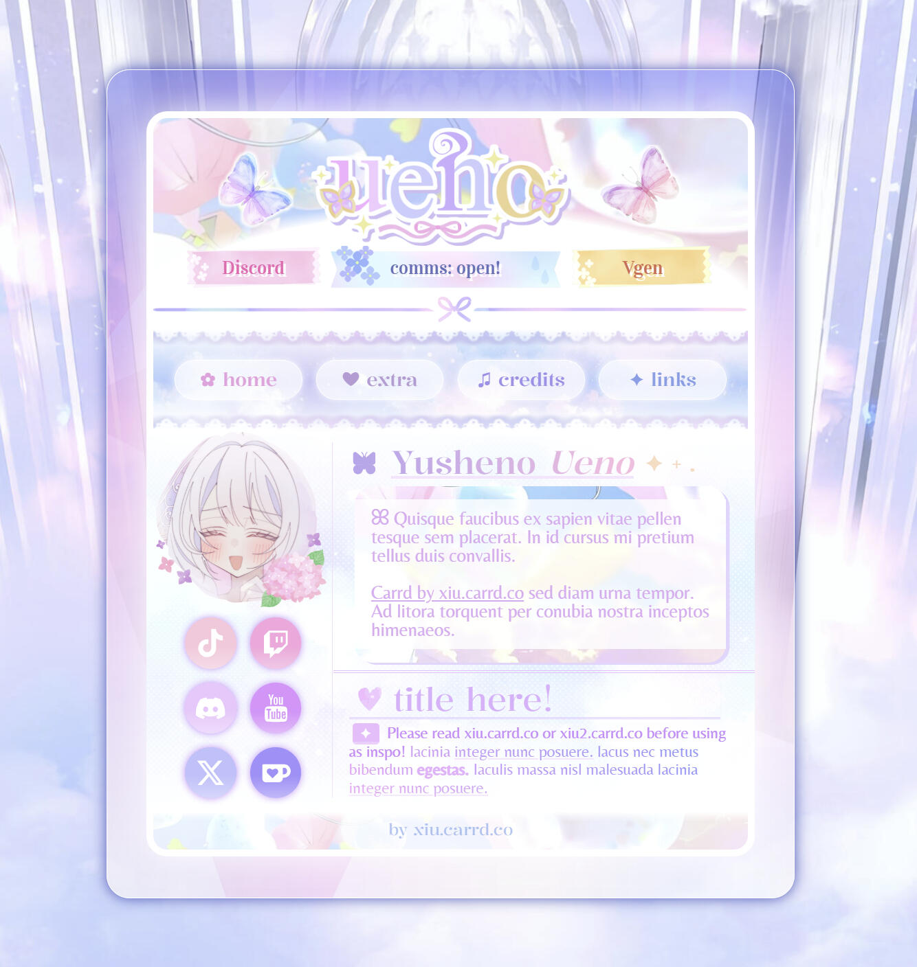 If you have an existing Carrd/Strawpage/Rentry/Google Doc/etc, I can insert the text from those platforms into your Carrd. You can also send the text to me over DMs! This is not mandatory, and I will default to using Lorem Ipsum if you don't have text available for me to use.