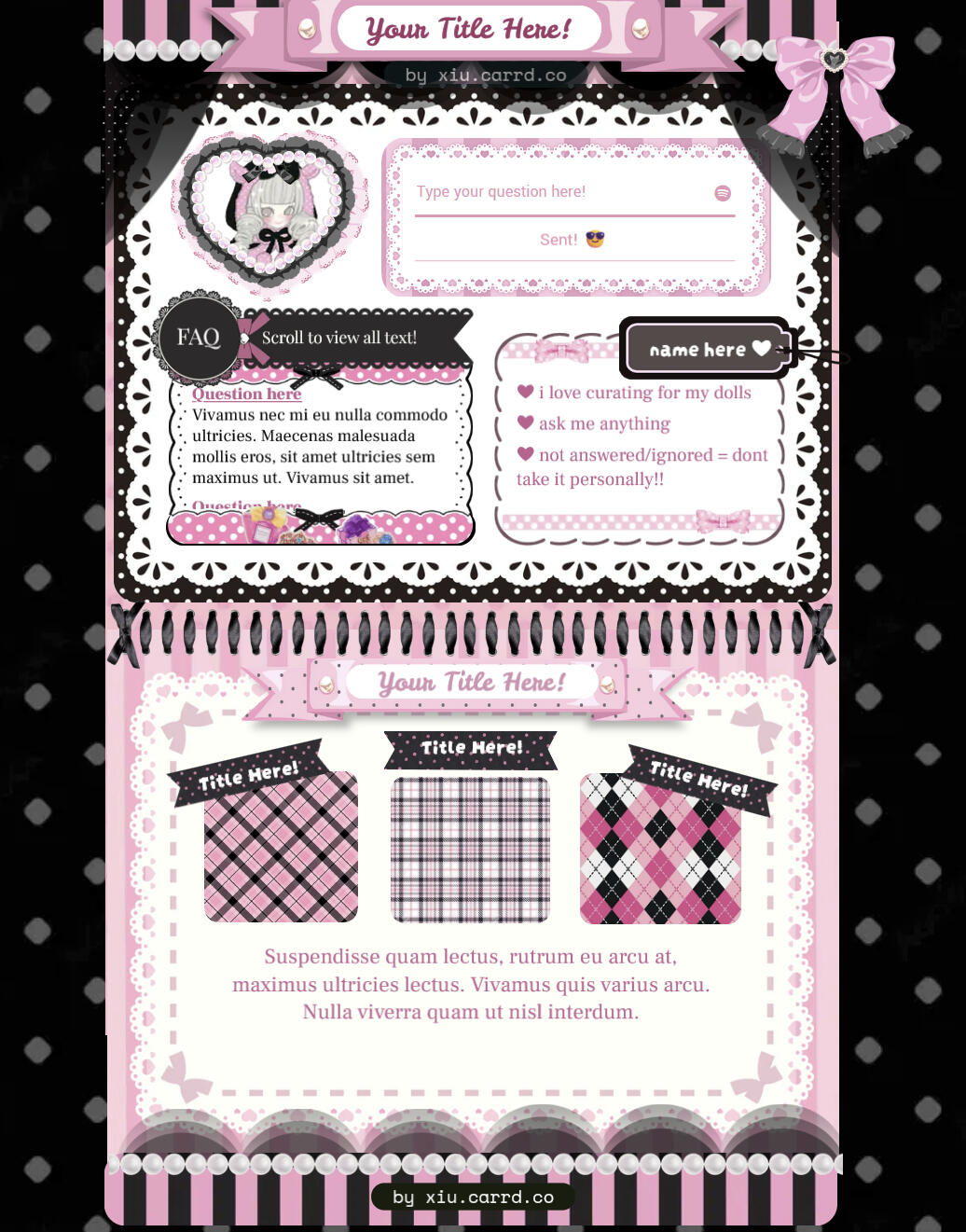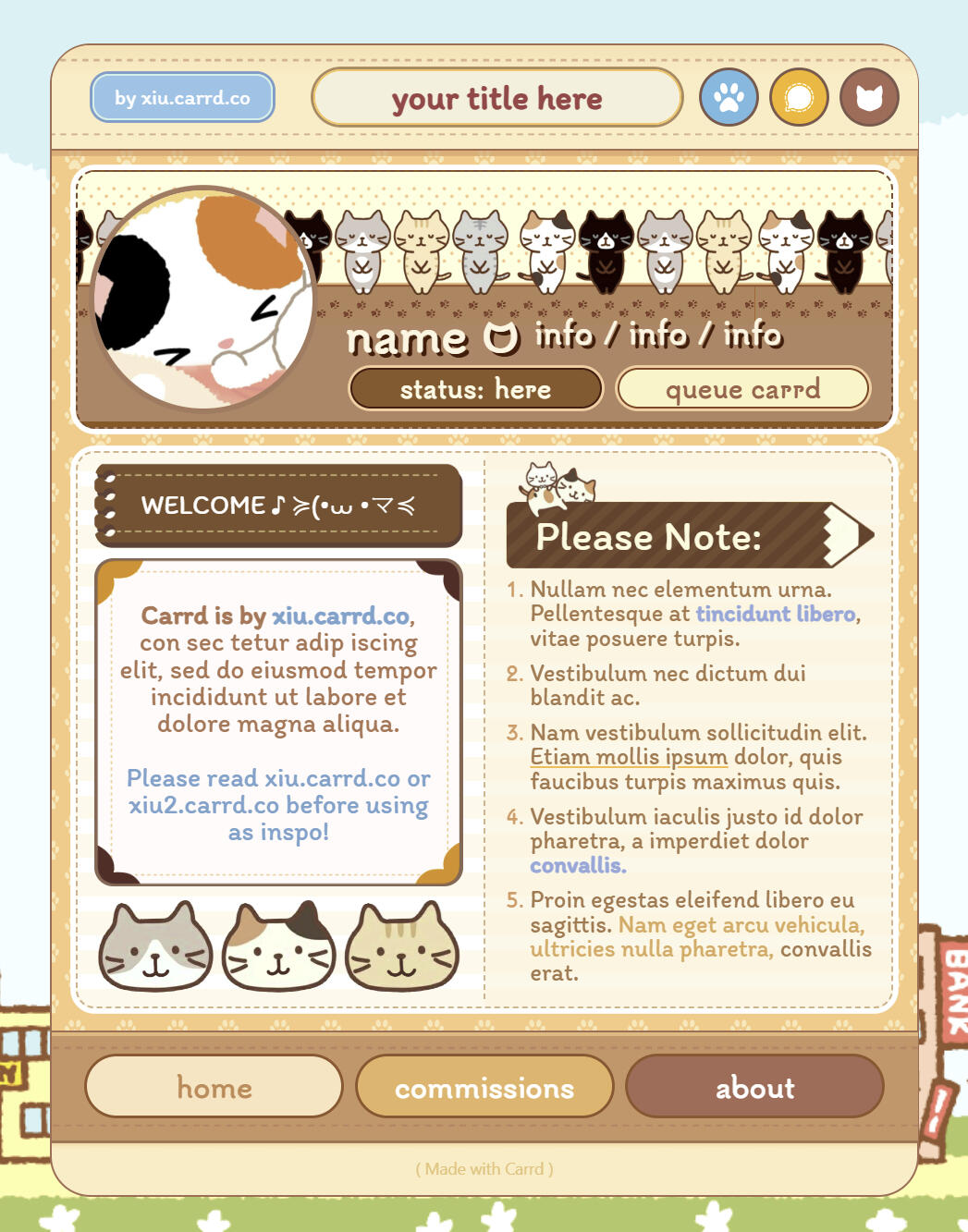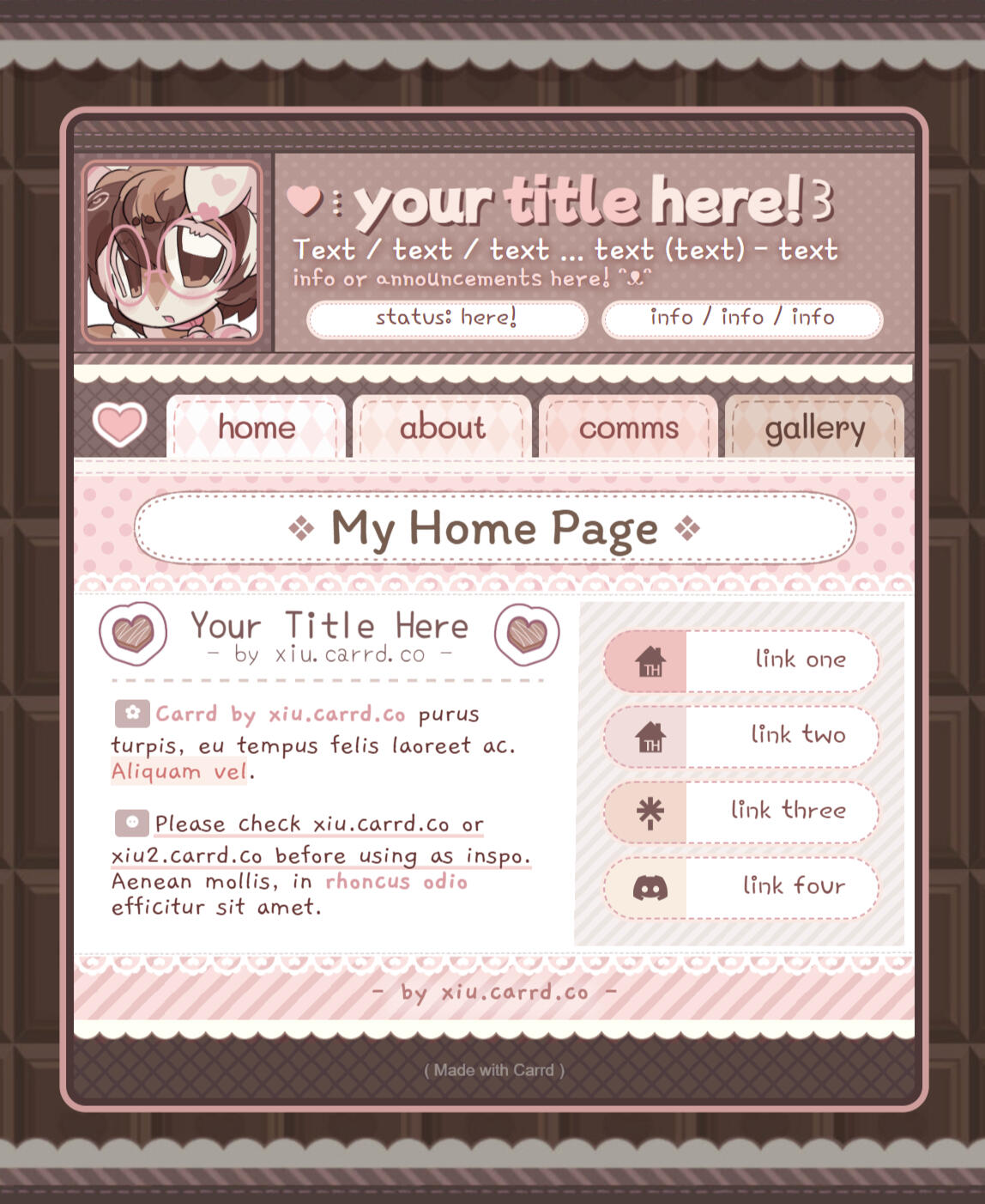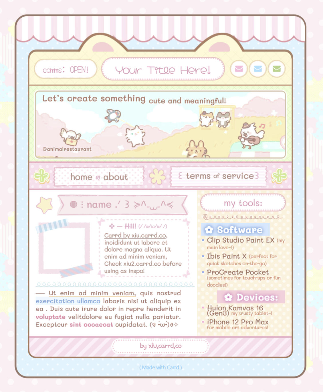 If you have an existing Carrd/Strawpage/Rentry/Google Doc/etc, I can insert the text from those platforms into your Carrd. You can also send the text to me over DMs! This is not mandatory, and I will default to using Lorem Ipsum if you don't have text available for me to use.