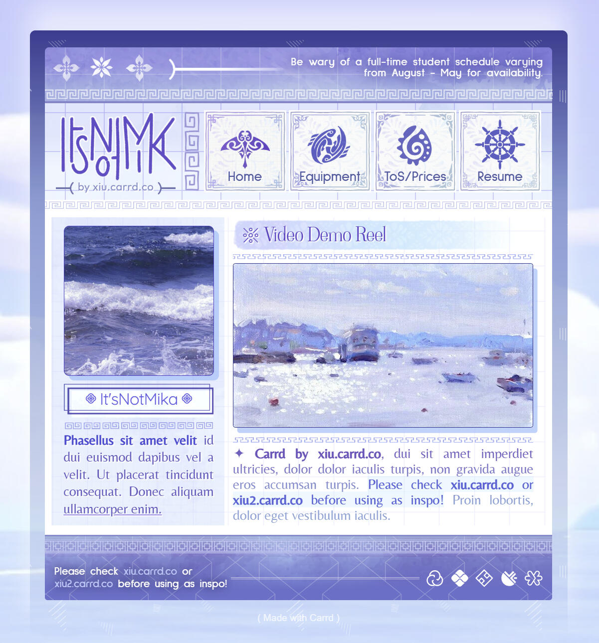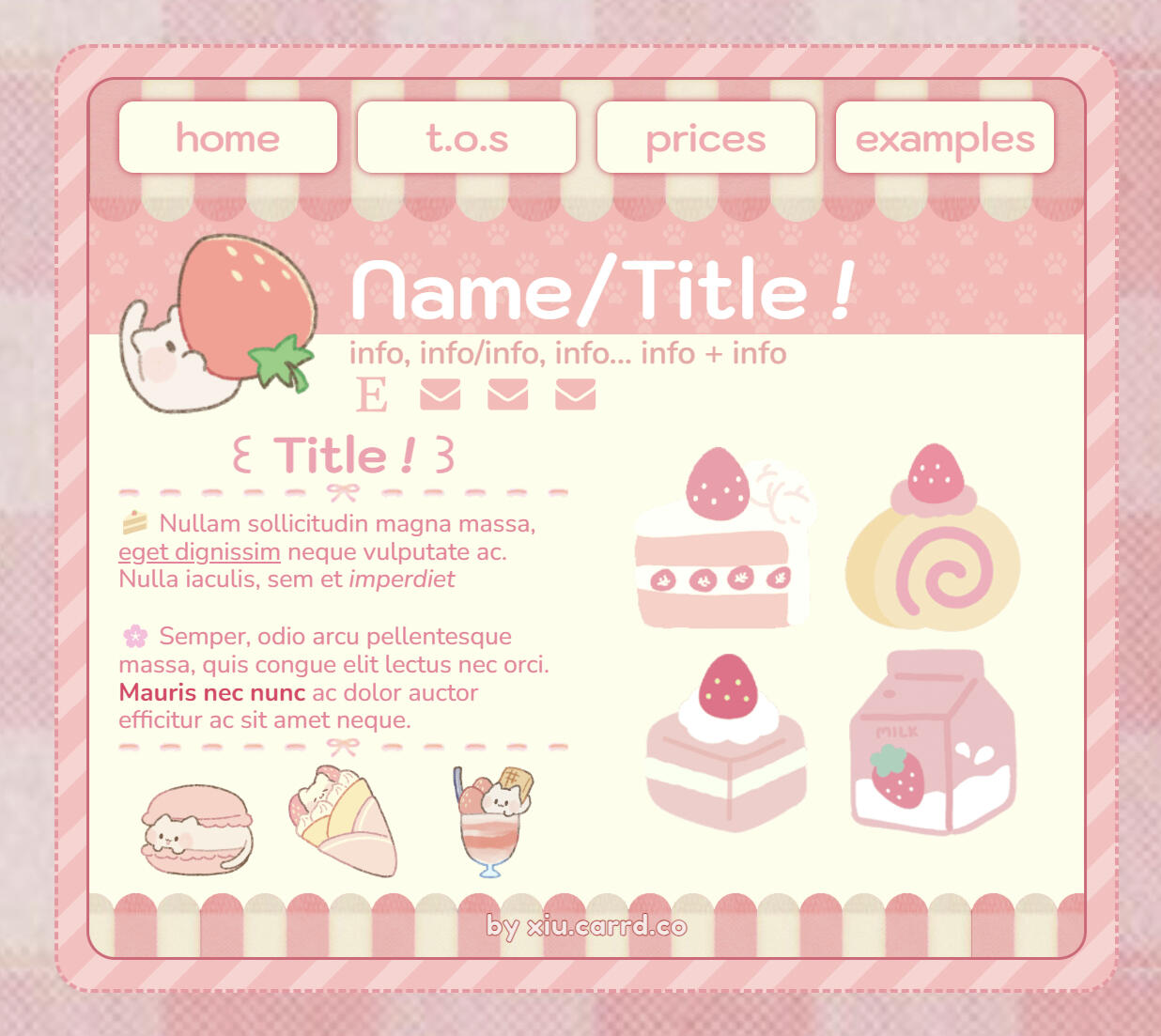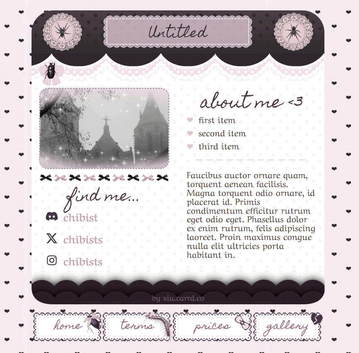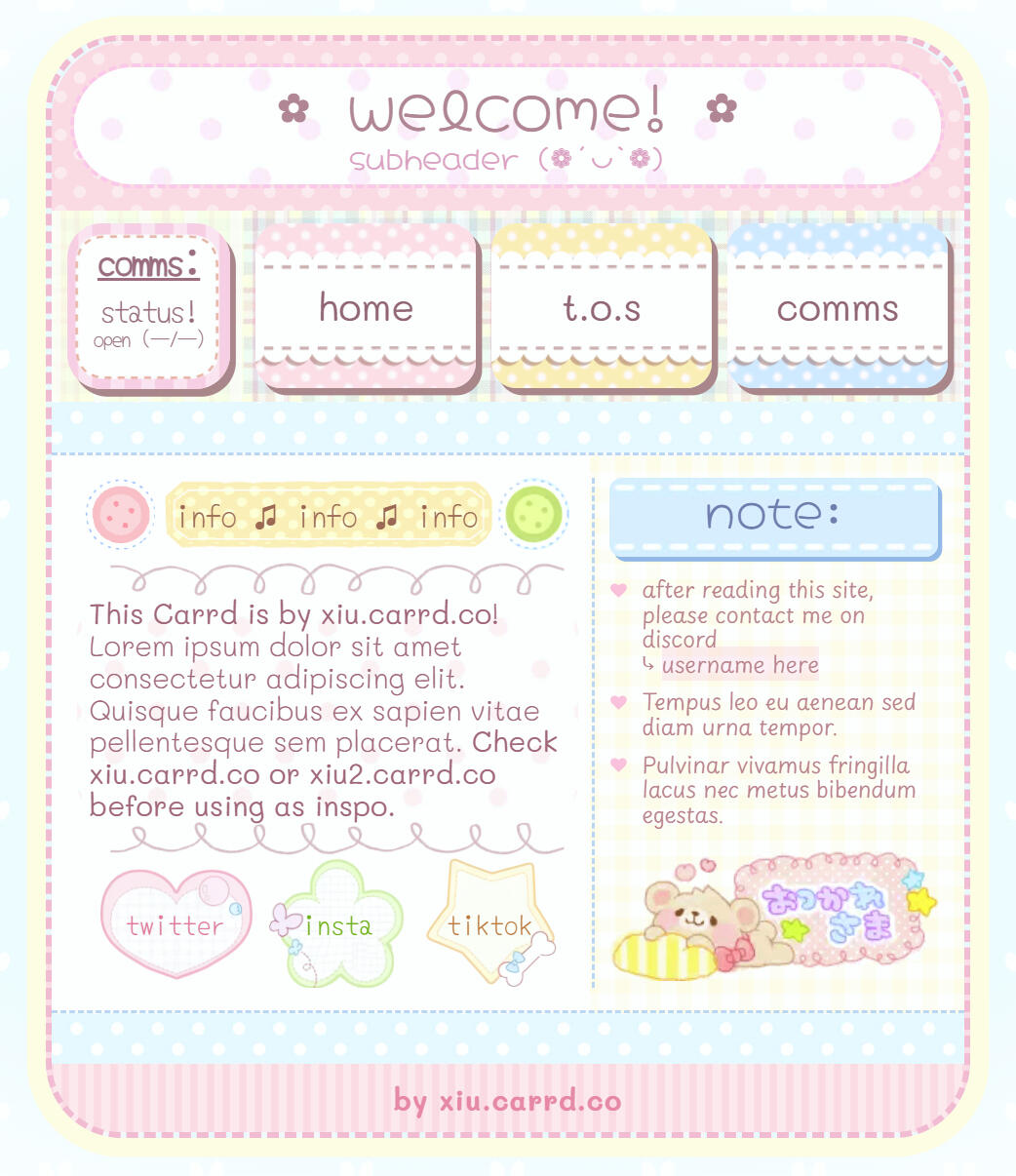 For example, a client may want a Carrd that's mainly pink, white, and blue with a simple soft feel, themed after Sakura blossoms and the sea, with some additional flower/pastry motifs. That's describing the aesthetic!