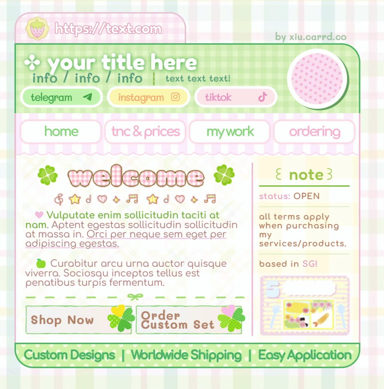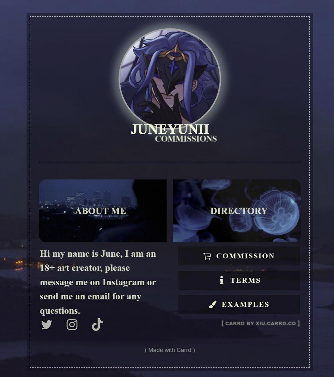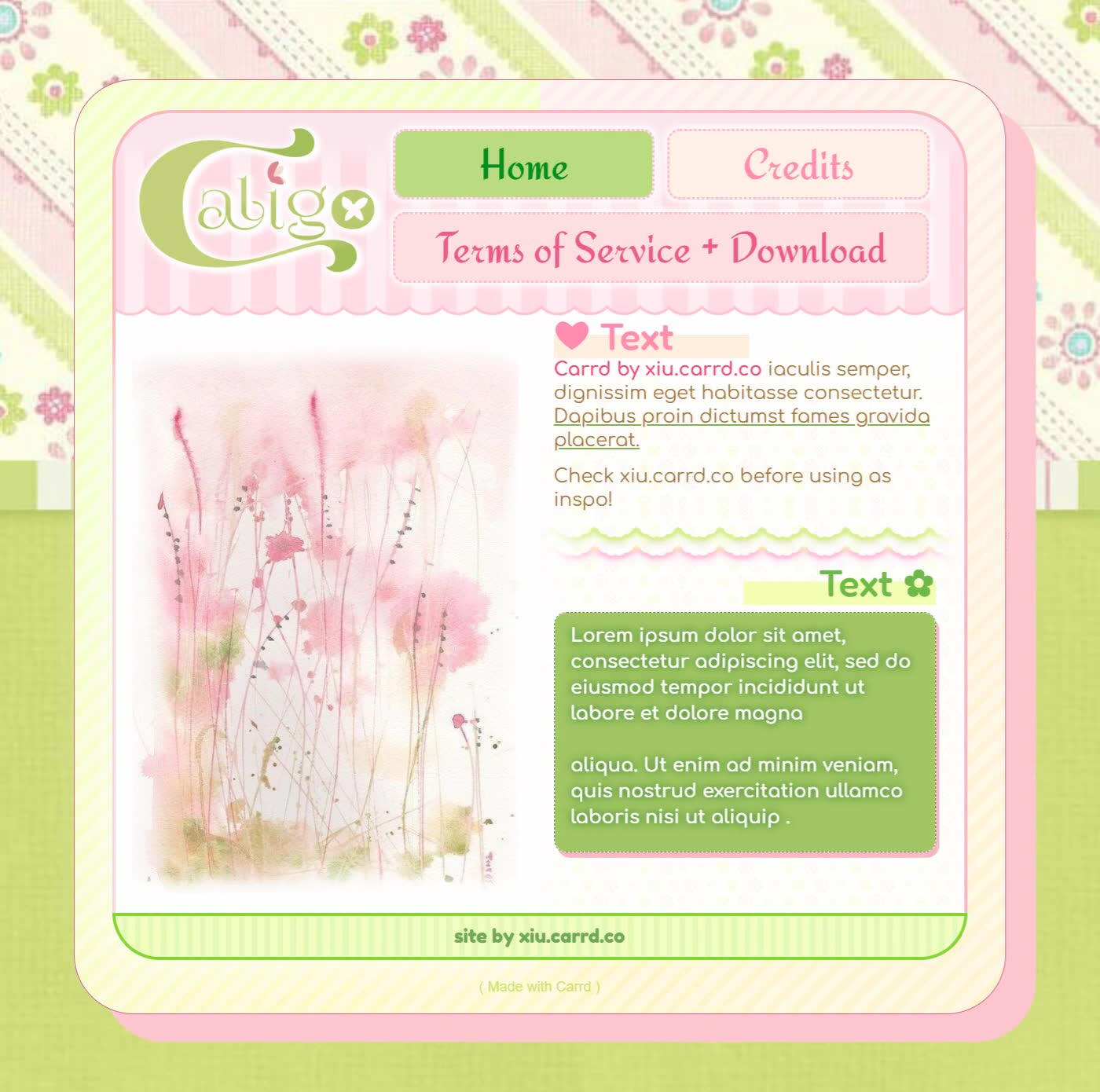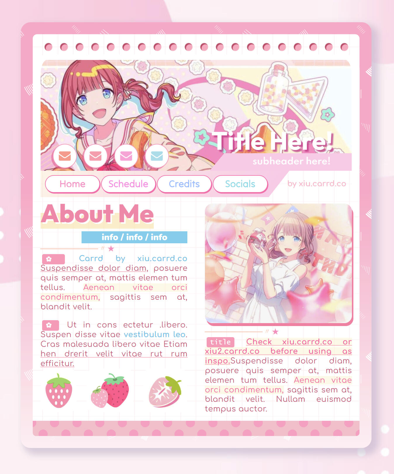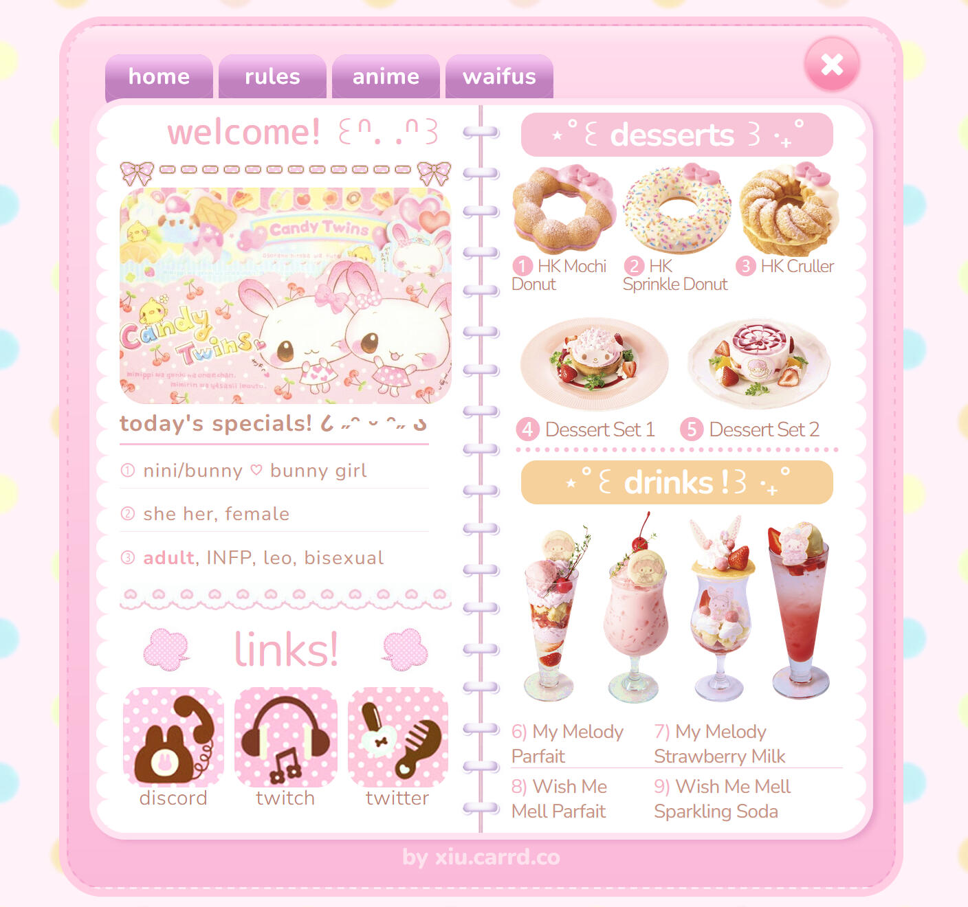 For example, a client may want a Carrd that's mainly pink, white, and blue with a simple soft feel, themed after Sakura blossoms and the sea, with some additional flower/pastry motifs. That's describing the aesthetic!
