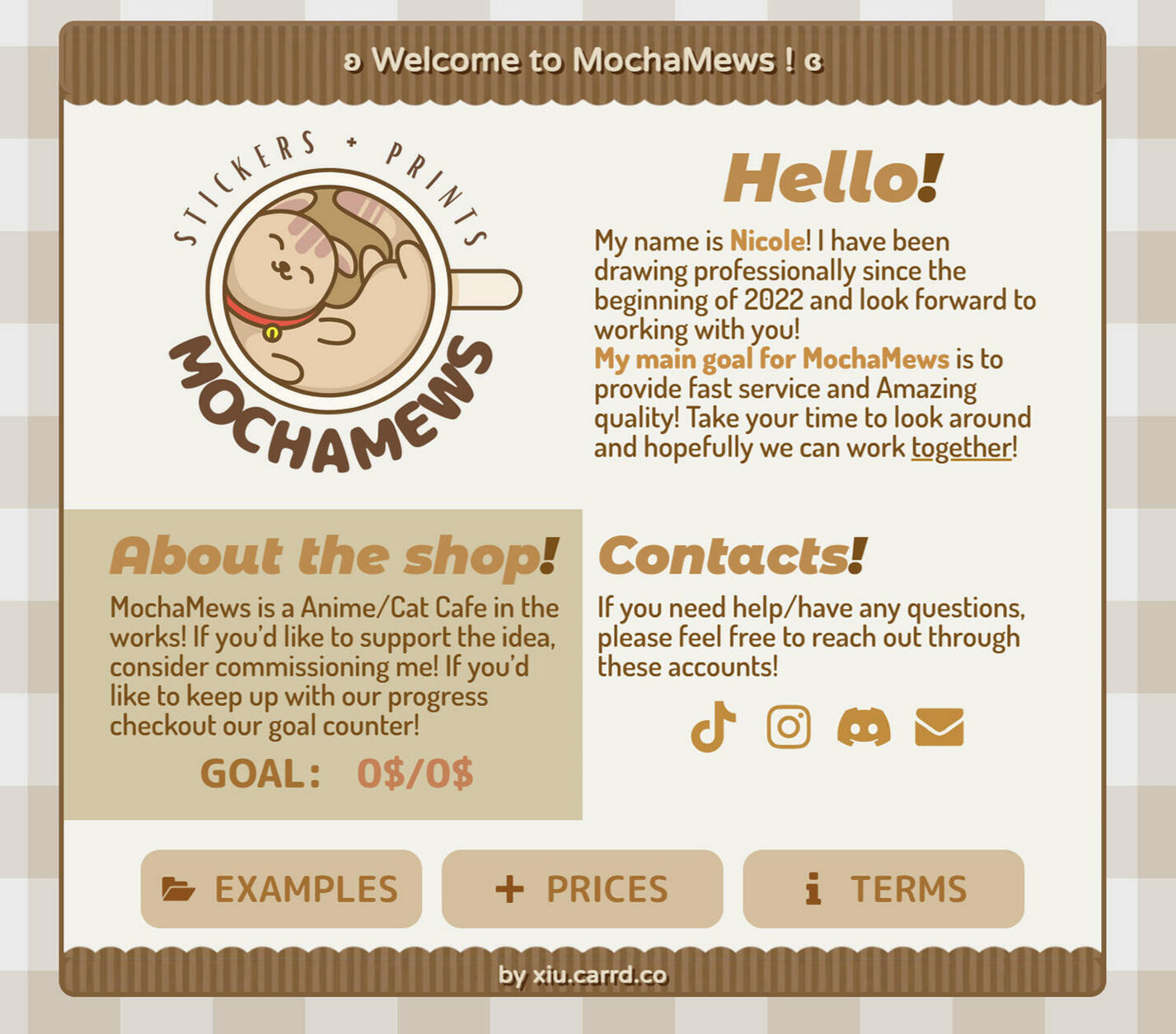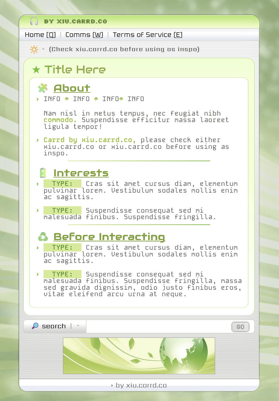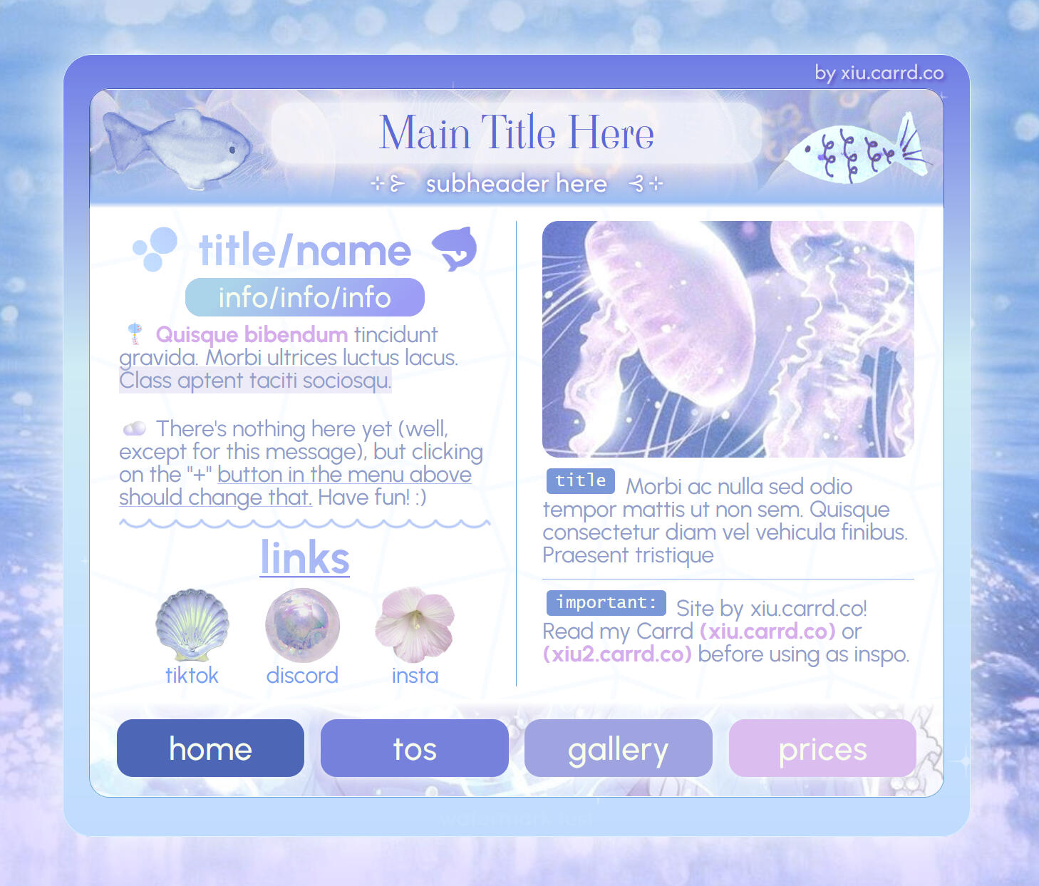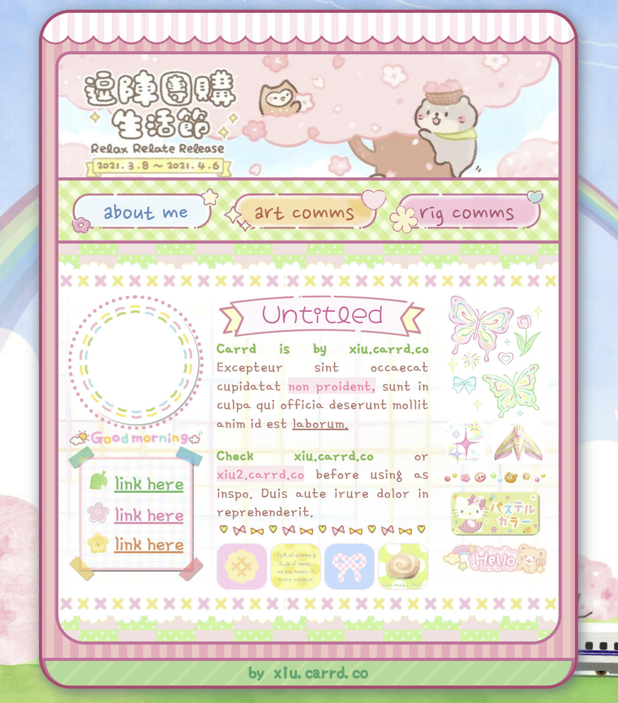 For example, a client may want a Carrd that's mainly pink, white, and blue with a simple soft feel, themed after Sakura blossoms and the sea, with some additional flower/pastry motifs. That's describing the aesthetic!