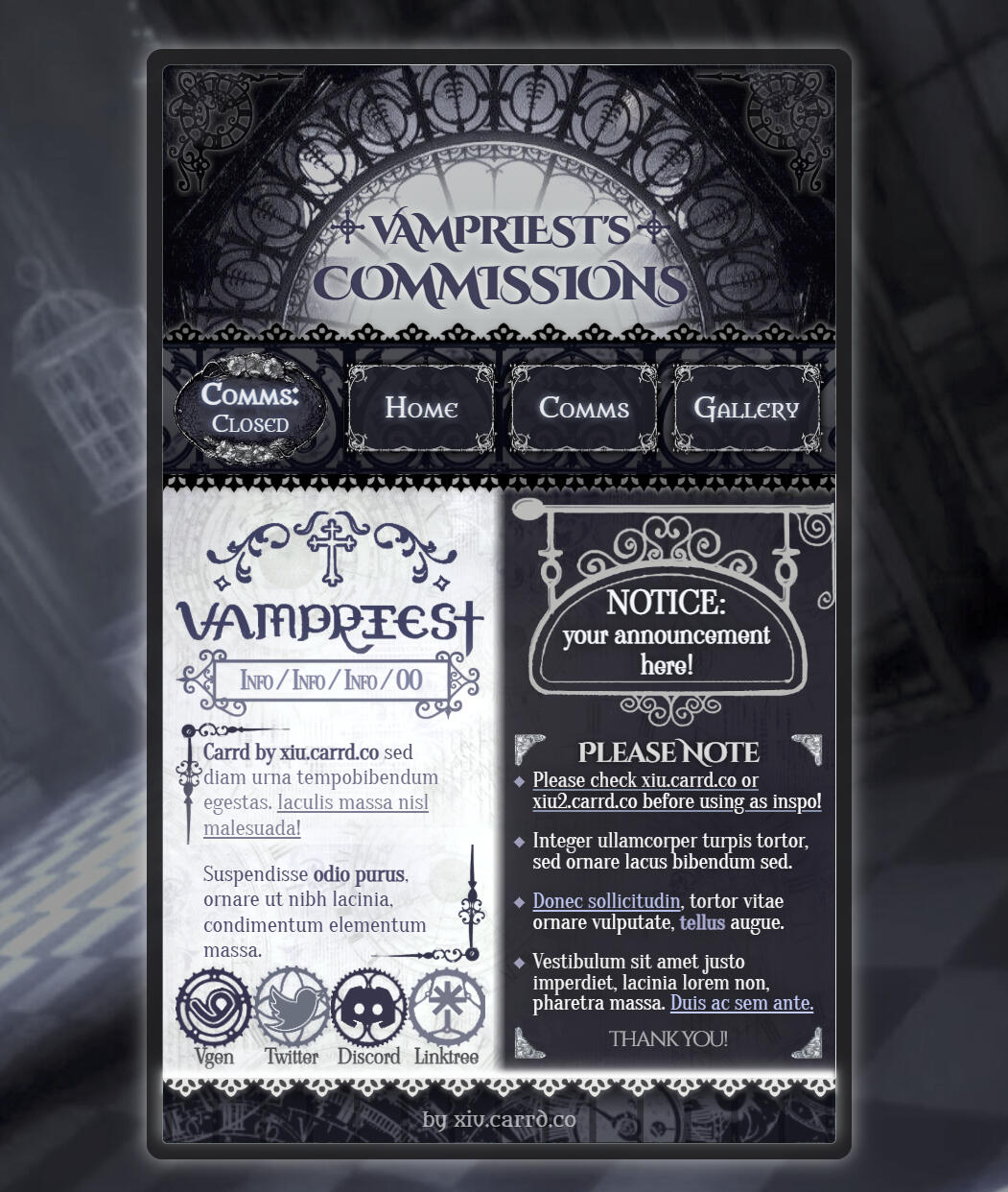 A 25% discount is offered to clients who are comfortable with me using the finished Carrd as a resellable template! The templates will be sold at the same price the original client paid.