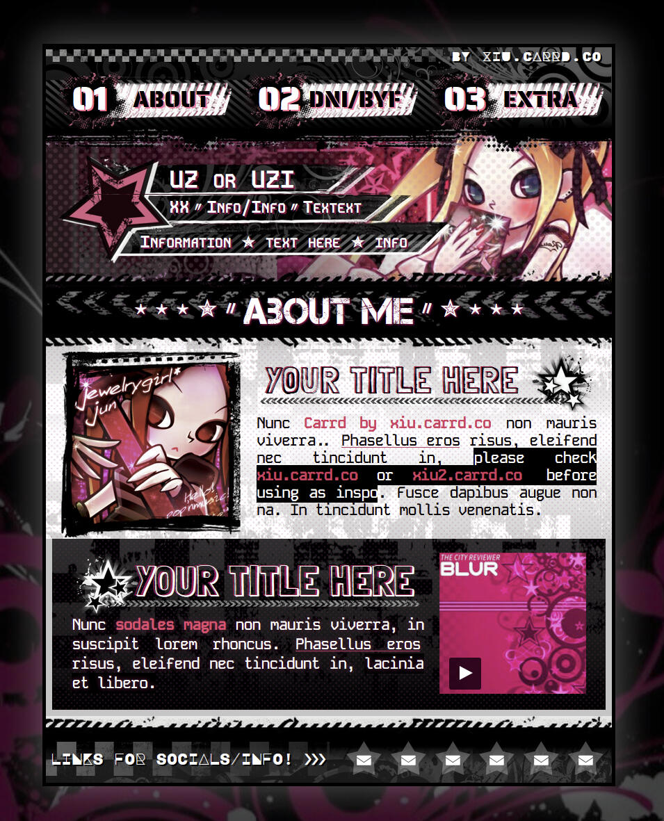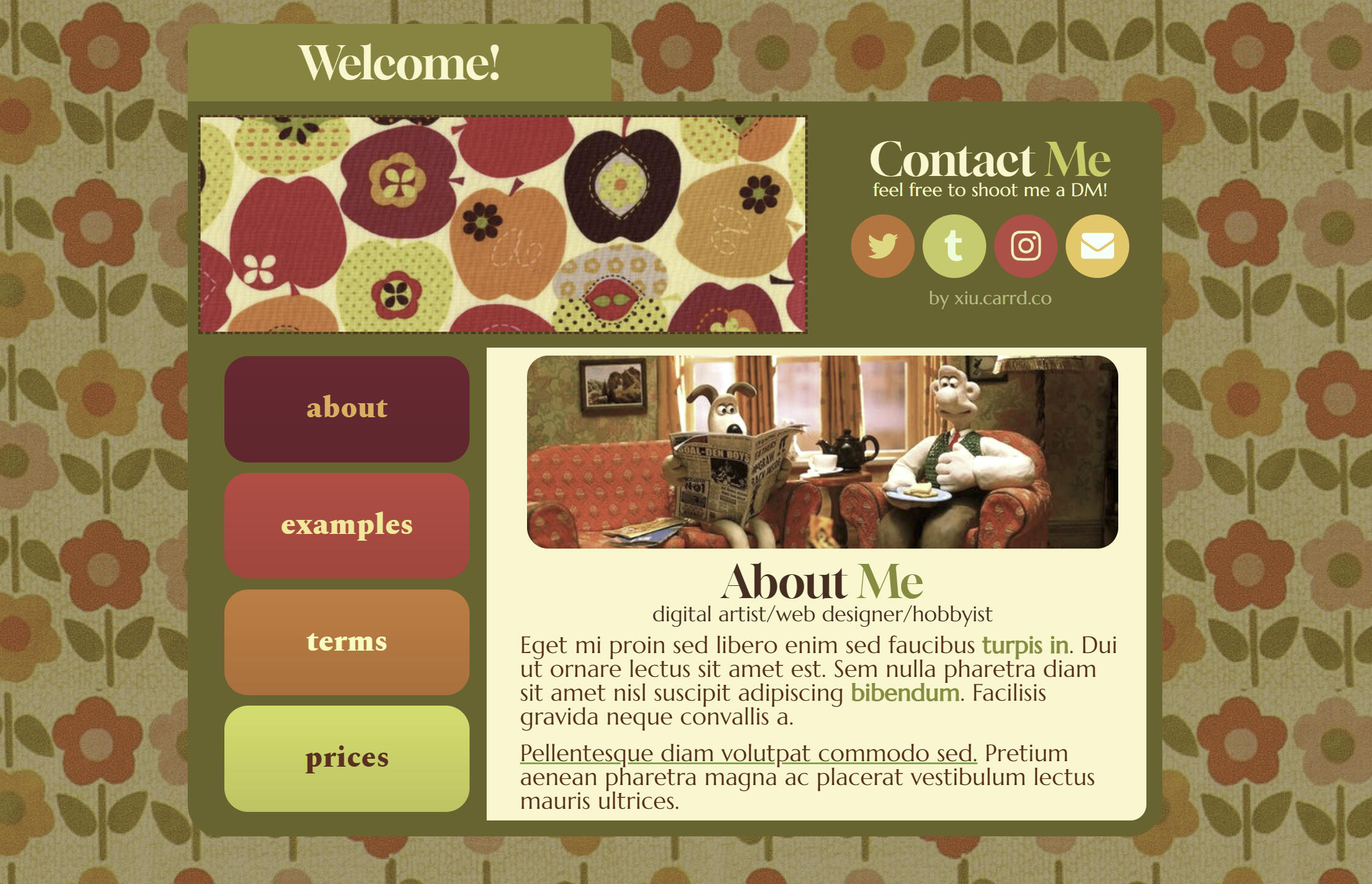 I prefer not to replicate any sites I've made in both aesthetic and layout.