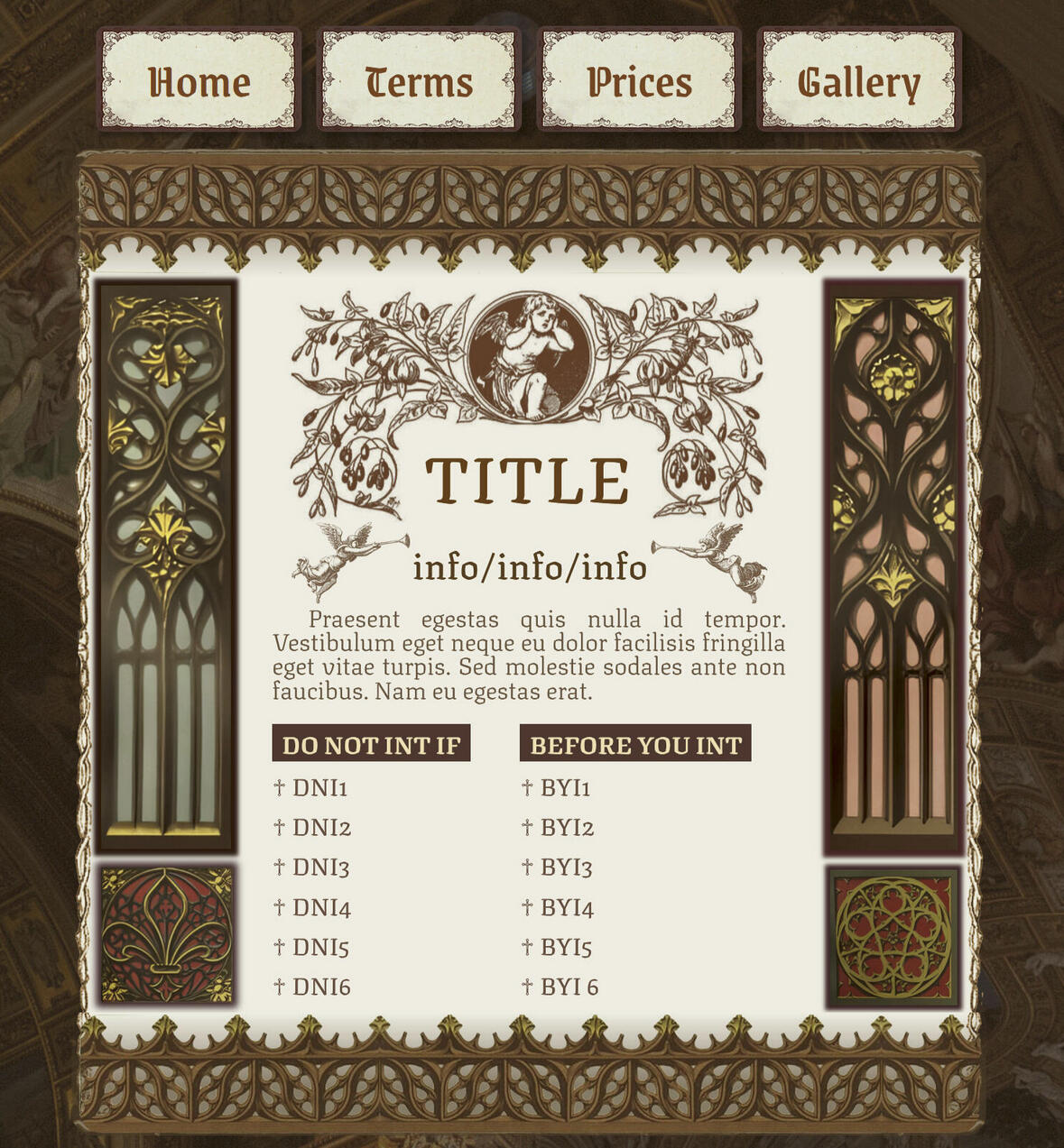 When payment is made, clients cannot make large changes to their requested aesthetic (ex: elegant pink menu themed site → gothic spellbook themed site). Small changes are permitted.